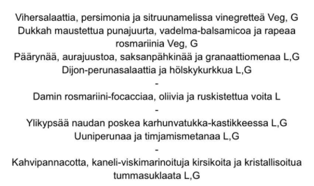 Illalliskortti 75 €, SRRA jäsen 65 € / alle 12-vuotiaat 35 € ja SRRA jäsen 30 €)